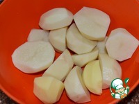 Картофель вымыть, почистить. Разрезать, чтоб половинки были примерно одной высоты. Промыть и обсушить на бумажном полотенце. |