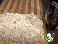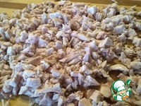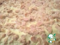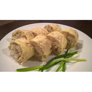 На пленке: положить запеченную грудку с яйцом Сверху положить отварной рис Смазать майонезом |