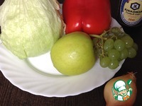 Добавляем яблоко, болгарский перец, лук, снова аккуратно перемешиваем. Поверх выкладываем виноград и сразу подаем. Приятного аппетита! |