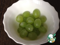 Ягоды винограда разрезаем пополам, удаляем косточки. У меня мелкий без косточек, я его оставила целиком. |