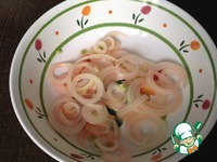 Обдаем кипятком репчатый лук и заливаем виноградным уксусом (1 ст. л.). Даем постоять 10-15 минут. |