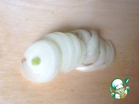 Репчатый лук нарезаем тонкими полукольцами или кольцами. |