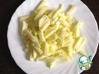 Яблоко очищаем от кожуры и семенных коробок, натираем на крупной терке или нарезаем соломкой. |