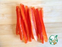 Болгарский перец нарезаем тонкими полосками. |