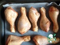 Затем вынуть голени из маринада, выложить курицу на противень или в форму для запекания и запечь в нагретой до 180 градусов духовке до готовности (примерно 45-60 мин). |