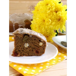 Вынула пирог - а он практически и готов. Чуть-чуть макушечка не допеклась. Зато сама коврижка получилась такая сочная, чуть влажноватая, мягкая. Поэтому смотрите сами, если любите влажную выпечку, немного не допекайте. |
