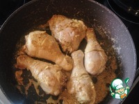 Смешиваем сметану с небольшим количеством воды (примерно 100 мл), добавляем соль, перец и немного карри. И вливаем к курице, тушим до готовности еще минут 15-20. |