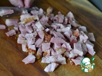 Отварное мясо нарезать на средние кусочки. У меня готовая прикопченная свинина. Размер кусочков на ваше усмотрение. Если любите колбасу с большими кусками мяса- режьте на крупные кусочки. |