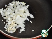 Мелкими кубиками режем лук и чеснок. Берём сковороду или сотейник, наливаем растительное масло и обжариваем лук пару минут до прозрачности. |
