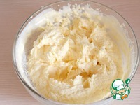 К взбитым желткам добавить размягченное сливочное масло (180 гр.). Смесь взбить. |