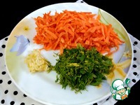 Морковь натереть на крупной терке. Чеснок измельчить любым удобным для Вас способом (я натерла на мелкой терке). Зелень мелко порезать. |