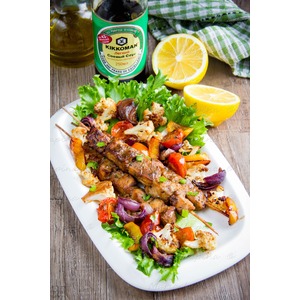 Увеличиваем температуру в духовке до 220С и включаем функцию гриля. Запекаем шашлычки с овощами 5 минут, затем перевернем и ещё 5 минут. |