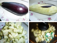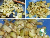 Небольшой баклажан очистить, нарезать небольшими кубиками. В сковороде разогреть растительное масло и обжарить баклажан под крышкой. |