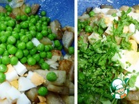 Добавить горошек и измельченную петрушку. |