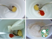 Готовим соус, в миске смешать горчицу, жгучий красный перец, йогурт. |