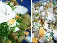 Описание: Предлагаю простой, полезный и сытный салат. Он готовится в считанные минуты. Идею увидела в инете. Баклажан прекрасно сочетается с отварным яйцом, зеленым горошком.