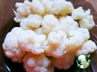 Цветную капусту разбираем на соцветия, отвариваем в кипящей соленой воде или в пароварке 15 минут. Приготовленные в воде соцветия надо будет откинуть на дуршлаг, а в пароварке - посолить. |