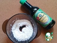Муку смешиваем со специями, соевым соусом, постепенно небольшими порциями добавляем воду, постоянно помешивая. Воды может уйти чуть меньше. |