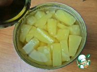 С консервированных ананасов слить 100 мл сиропа. |