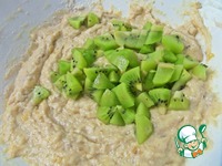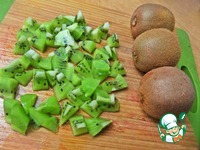 Теперь готовим начинки. Можно обойтись одними ананасами, но у меня были киви, которые не хотели дозревать, а вот в выпечку твёрдые-в самый раз. 2 мелких чистим и делим на кусочки. |