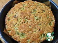 Тефлоновую форму 22 см в диаметре прикрыть смазанным маслом без запаха пергаментом и вылить тесто. |