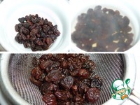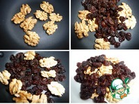 Половинки грецких орехов обжарить на сухой сковороде 1 мин., затем добавить изюм и помешивая, прогреть его, пока не начнет вздуваться, около 1-2 мин. Снять с огня. Немного остудить. |