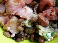 Рыбу очистить и нарезать кубиками. Выложить в блендер фасоль, рыбу, жареный лук и икру сельди вместе с маслом, в котором она была. |
