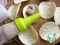 Подавать к завтраку со свежим хлебом или гренками. А для фуршетной подачи выдавить паштет из мешка с резным наконечником на картофельные чипсы или крекеры. |