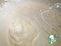 Отделить желтки от белков. Желтки с сахаром (1 стакан) взбить до однородности и добавить майонез, сметану, соду. |
