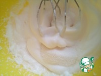 Белки взбиваем сначала на маленькой скорости до однородности, увеличиваем скорость миксера и взбиваем до белой пышной пены. |