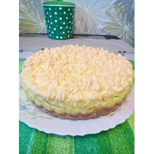 Теперь нужно выложить на пирог взбитые белки, я сделала это с помощью кулинарного шприца, но можно и без него. |