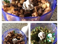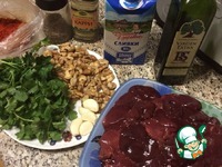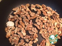 Первым делом обжарить орехи с зубчиком чеснока. Сковороду слегка сбрызнуть оливковым маслом. После обжаривания пересыпать со сковороды, остудить. |
