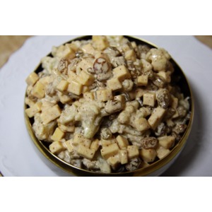 Описание: Понравился мне салат из свежей (необработанной) цветной капусты, который я уже опубликовала. Здесь капуста слегка припущена в кипятке и остается хрустящей. Сочетание с изюмом воспринимается очень свежо. Делала "на скорую руку" к ужину после работы. Салат улетел!!!