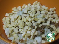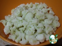 Капусту разобрать на мелкие соцветия, припустить в кипящей воде (около 5 минут) |