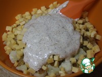 В майонез добавить паприку. Перемешать и залить салат. Перемешать. |