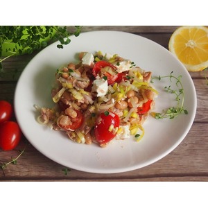 Все ингредиенты смешать, добавить оливковое масло, соль, перец и лимонный сок по вкусу. Салат поставить в холодильник на 20-30 минут. |