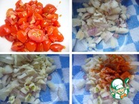 Помидоры нарезать кубиками. Лук и чеснок измельчить, к ним добавить лимонный сок, соль, красный перец, кориандр. |