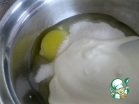 Смешать яйцо, сахар и сметану. |
