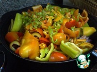 Болгарский перец порезать крупно. Венгерский нарезать полукольцами. |
