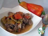 Сверху выложить оба перца, посолить, налить в казан воды или бульона так, чтобы было закрыто примерно две трети объема. |