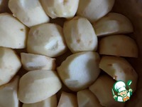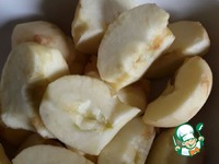 Моем, чистим и нарезаем яблоки на четвертинки. |