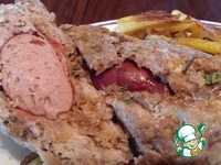 Завернуть в фольгу и запечь в духовке. Затем фольгу убрать и дать рулету подрумяниться. У меня весь процесс занял около 40 минут. |
