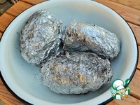 Аккуратно достать из углей все три пакета, стряхнуть угли. Слегка остудить. |