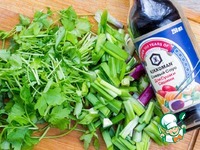Подготовим маринад. Зелень промоем, обсушим крупно порубаем. |