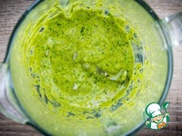 В блендере смешаем зелень, соевый соус, чеснок, оливковое масло и немного воды. |