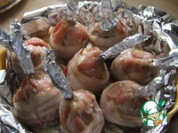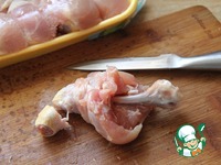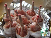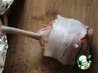 Обернуть каждую голень ленточкой бекона и тоже закрепить зубочисткой. |