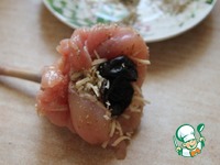 Сделать смесь из соли, перца, специй и обработать заготовки. Вложить в образовавшийся кармашек сыр, сливу. |