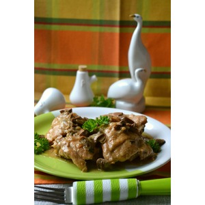 Залить соусом куриные ножки в казанке. Прикрыть крышкой и тушить 35 минут до готовности. |