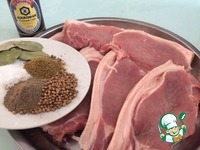 Время приготовления указано без учёта маринования. Порезать свиной карбонат на стейки, подготовить специи. |