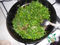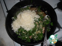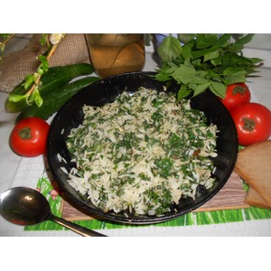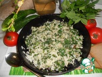 Ввести отварной рис к зелени. Перемешать и сразу же снять сковороду с огня. |